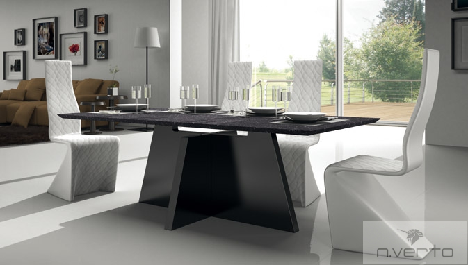 Cтол «Milos» итальянской фабрики «IdealSedia» . Фабрика «IdealSedia» знаменита во многих странах мира благодаря широкому ассортименту качественной мебели и аксессуаров. Фабрика специализируется на изготовлении обеденных зон из стекла, металла, дерева, пластика и других материалов. В качестве обивки для столешниц и посадочных мест стульев используется ткань, кожа, экокожа различных цветовых решений.